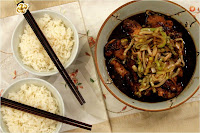 Frango ao Molho de Shoyu e Gengibre, com Alho Poró Caramelizado e Arroz Branco
