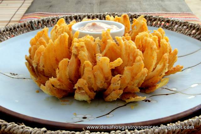 Outro dia, recebi no Facebook uma receita que me desafiou: A Cebola empanada do Outback, aquela enorme, parecendo uma flor, com molho no meio! (Ateliê Doces e Sabores Pão de Mel).