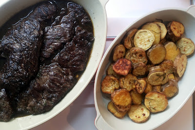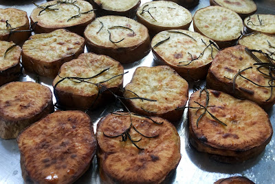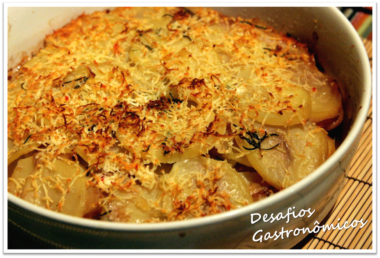 A Galette de Batatas foi refeita com algumas modificações: a versão individual, com papelotes, virou uma versão "coletiva", a maçã verde foi substituída por maçã gala e, para terminar, o queijo parmesão para gratinar teve que ser substituído (por estar fedido demais) por uma ricota defumada, que ficou crocante e perfeita depois de ir ao forno. Também o tempo de forno foi alterado para 1 hora, para garantir que as batatas estivessem bem cozidas! As receita abaixo são para quatro pessoas!