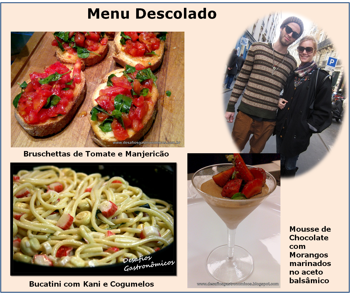 DESAFIO: Desafiar os leitores a preparar um Menu para o Dia dos Namorados!