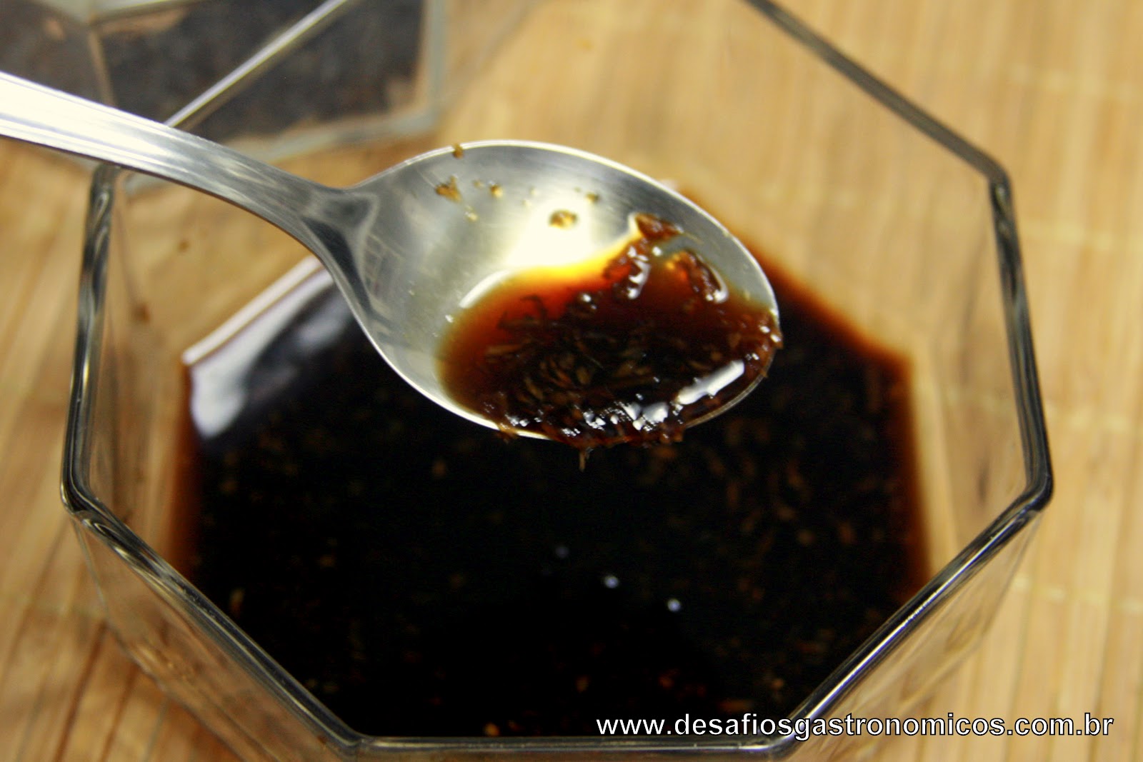 Prepare o molho, misturando o shoyu, o açúcar e o gengibre e reserve.