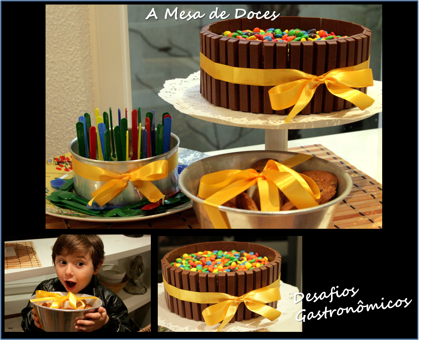 O tempo de planejamento deste evento em particular foi bem curto, menos de uma semana! Dado o sucesso do "Boteco Gourmet", imaginei fazer um "Botequinho do Dia das Crianças", com receitas infantis repaginadas (para ver as receitas, é só clicar): o Cachorro Quente virando um Enroladinho Folhado de Salsicha... Os Nuggets de Frango mudando para Mini Espetinhos de Frango Teriaki... Os pastéis de carne e queijo sendo sustituídos por Pastéis de Vento (só a massa), servidos com frios fatiados (ao melhor estilo do Bar Bottagallo), as Mini-Pizzas de massa pronta se transformando em Pizzas Quatro Estações (com sabores bem coloridos: Azeitonas Verdes, Cogumelos Paris, Tomates Cereja e Presunto)... As batatas fritas se transformando em purê, acompanhadas de carne moída e criando um Escondidinho! Para a sobremesa, o Brigadeiro não podia faltar... Só que de Capim Santo, todo verde!! E o Bolo de Chocolate virou um Lindo Bolo decorado com Kit Kats e M&Ms! De brinde, uma porção de Cookies com gotas de chocolate (belga, é claro...rs).