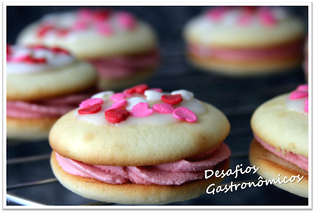 Aqui no blog já postei algumas receitas de Whoopies: o tradicional, de chocolate com recheio de marshmallow e outro de Baunilha com recheio de chocolate.