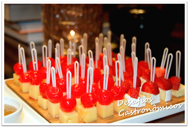 A inspiração foram as frutas e os peixes ("Fruits & Fish"): como entrada, um ceviche de manga e kanikama; como prato principal, salmão no papillotte com molho de maracujá (assado dentro de um "pacote" de papel alumínio - aprendi essa receita com a incrível Rita Lobo, do Panelinha) com Cuscuz Marroquino; e, para finalizar, um Creme de Papaya "Light", sem sorvete de creme (para ficar "light", usei banana nanica congelada, para encorpar e gelar o papaya).