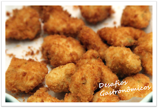 Pensa, pensa e improvisa!! Strogonoff... não... Espetinho de Frango... não... Frango a Moda Chinesa... não... Nuggets... SIM!!! E com uma farinha especial para empanar, que comprei na Liberdade depois de ver uma receita de coxinha da Carla Pernambuco: a Panko! Bem leve, de granulação maior que a farinha de rosca, a Panko deixa o empanado muito crocante e sequinho. Mas não é fácil de encontrar... Só em supermercados especializados em produtos orientais, como os que existem lá na Liberdade (bairro de São Paulo). E foi lá que comprei o meu pacotinho de Panko que utilizei neste desafio.